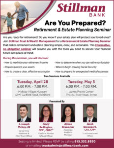 Stillman Bank is not responsible for the content of external web site linked to or references from the Stillman Bank web site. Stillman Bank web site neither endorses the information, content, presentation, or accuracy nor makes any warranty, expressed or implied, regarding these external web sites. By selecting the link, you will be leaving the Stillman Bank web site and will be taken to a third party site that may offer a different privacy policy and level of security. The third party vendor/partner is responsible for web site content and system availability.